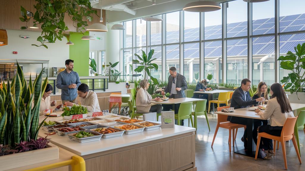Sustainable food services in corporate settings are reshaping how distributors operate, emphasizing responsible sourcing. You’ll want to partner with local farms to cut emissions and boost regional economies. Incorporating plant-based options progressively can also reduce water usage and emissions. Conducting waste audits helps you identify and adjust portion sizes effectively. Utilizing technology like AI-driven inventory management can streamline procurement processes. Education and training for your staff foster a culture of sustainability. These strategies not only tackle operational challenges but also enhance overall efficiency, paving the way for a greener future. Discovering deeper insights can further enhance your approach.